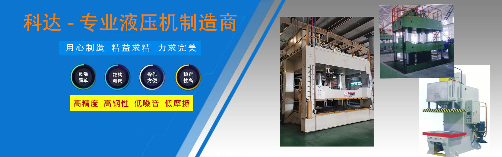 南通科達機床制造有限公司主要生產四柱液壓機、框架液壓機、玻璃鋼液壓機等系列鍛壓機床,公司秉承工匠精神,機床廣泛應用于輕工加工、冶金鍛壓、建筑壓塊、機械加工、船舶軸承安裝、汽車橫梁沖壓、航空等生產領域,產品銷往全國各地。